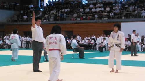 開始早々、先に記録写真を一枚撮影しようと顧問がカメラを構えた瞬間、下山の掛けた大内刈が私の方向に来ました。