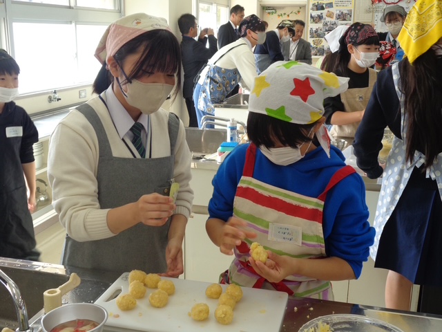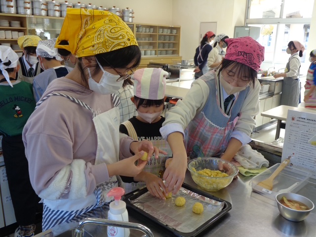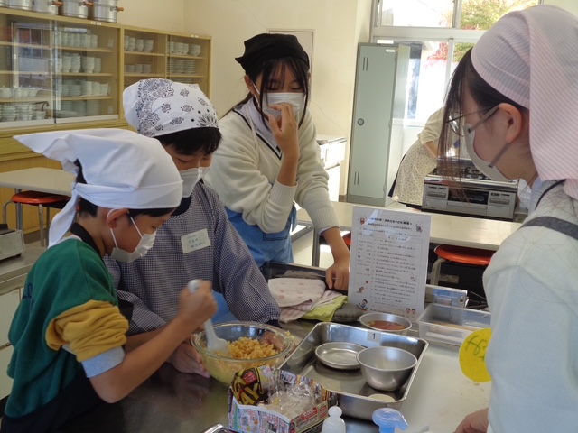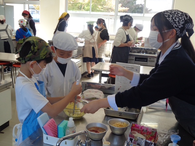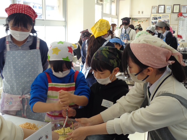 これからも、地域の小学生と継続して交流していきたいと思います。また、今回は欠席がほとんどなく、36人という大人数でにぎやかにできたので、次回もぜひ多くの小学生と交流したいと思っています。参加した小学生は「昨年楽しかったから、今年も来た!」「簡単だったから、家でも作りたい。」と言ってくれたので、うれしく思いました。1時間という短い時間でしたが、生徒たちにとって貴重な経験になったと思います。