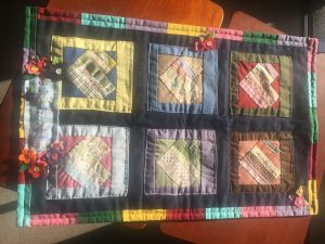 毎回楽しみにして下さっていて、お互いに「また会えたね~~!!」で始まりました。 カラオケを楽しんでいただき、4人のかわいい女子部員の「ピンク・レディ メドレー」も好評でした。最後は「世界に一つだけの花」を毎年一緒に歌います。 利用者さんのご家族もたくさん参加され優しい声をかけて下さいます。 続けていきたい大切な行事の一つです。 丁寧に時間をかけて作って下さったキルトのウォールポケット、大切にします。 毎年恒例の「のぞみ園」(荘内)での訪問演奏会も10回目になりました。 毎回楽しみにして下さっていて、お互いに「また会えたね~~!!」で始まりました。 カラオケを楽しんでいただき、4人のかわいい女子部員の「ピンク・レディ メドレー」も好評でした。最後は「世界に一つだけの花」を毎年一緒に歌います。 利用者さんのご家族もたくさん参加され優しい声をかけて下さいます。 続けていきたい大切な行事の一つです。 丁寧に時間をかけて作って下さったキルトのウォールポケット、大切にします。